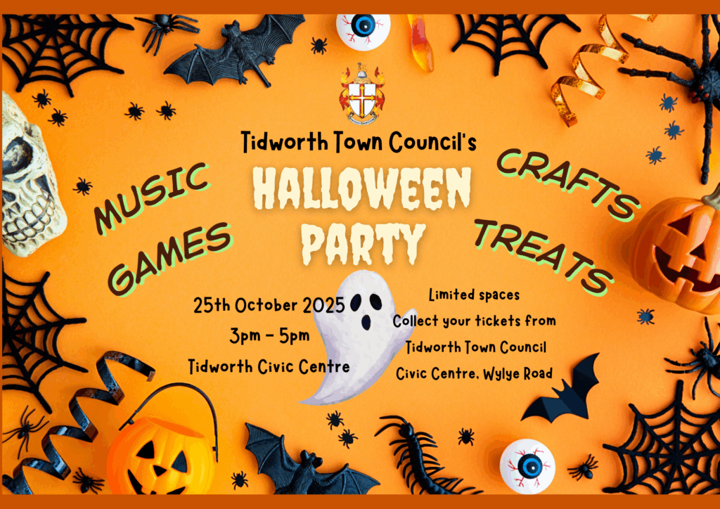 Get ready for some spooky fun at the Tidworth Town Council Halloween Party! 3pm – 5pm on Saturday, 25th October at the Tidworth Civic Centre